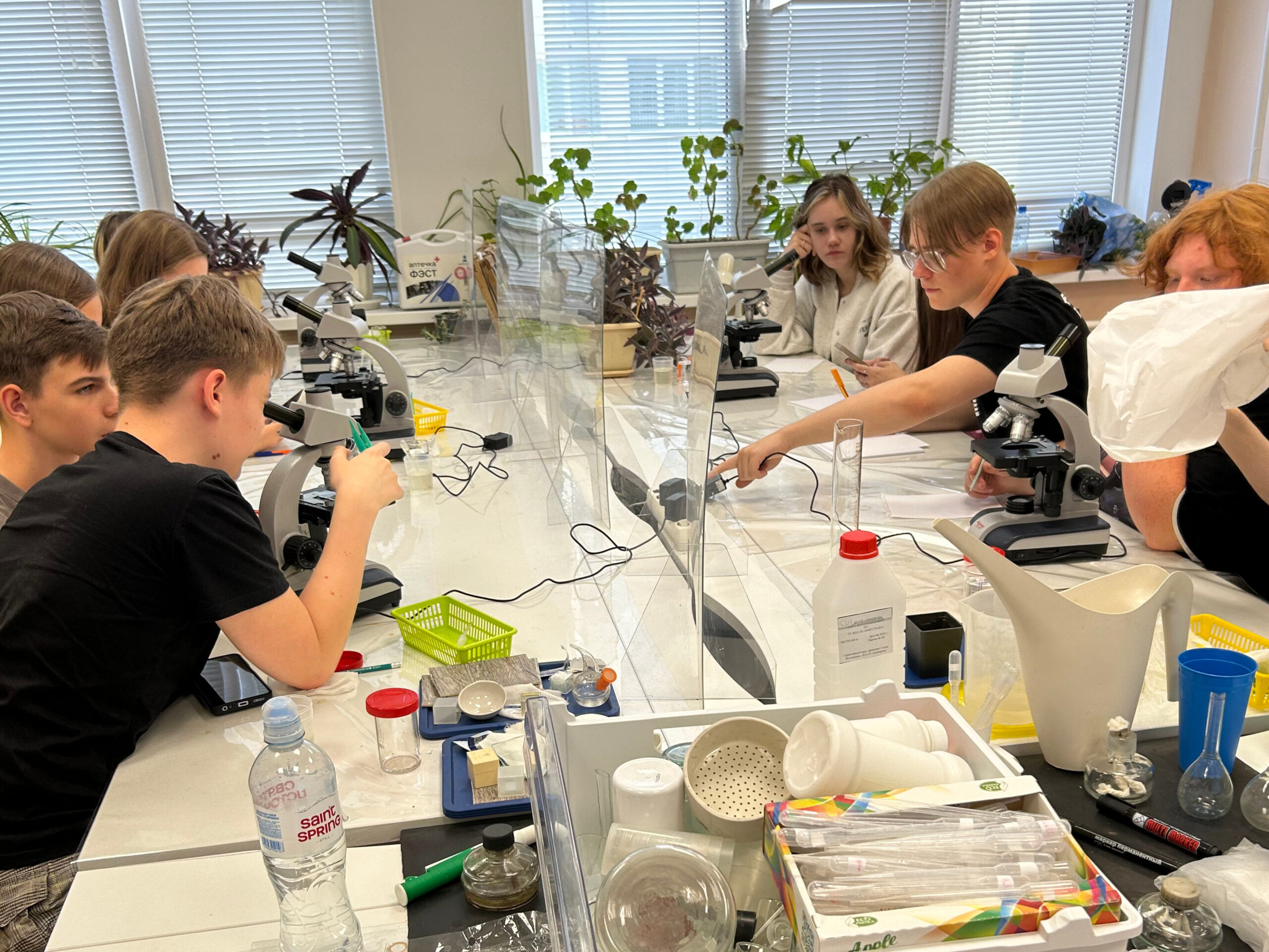 Самым увлекательным этапом стала лабораторная работа. Используя современные микроскопы, юные исследователи рассмотрели, что скрывается в прозрачной на первый взгляд воде. Под многократным увеличением открылся целый микромир: были видны микроскопические водоросли, простейшие организмы и другие частицы. Такой анализ позволяет идентифицировать потенциальные загрязнители, включая органику и микропластик, а также оценить биологическое разнообразие водоема, которое является важным индикатором его здоровья.