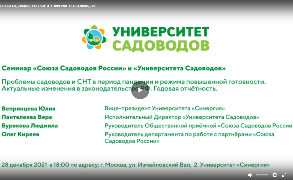 28 декабря 2021 года состоится семинар Союза садоводов России и Университета садоводов в рамках образовательной программы «Ликбез для садовода».
