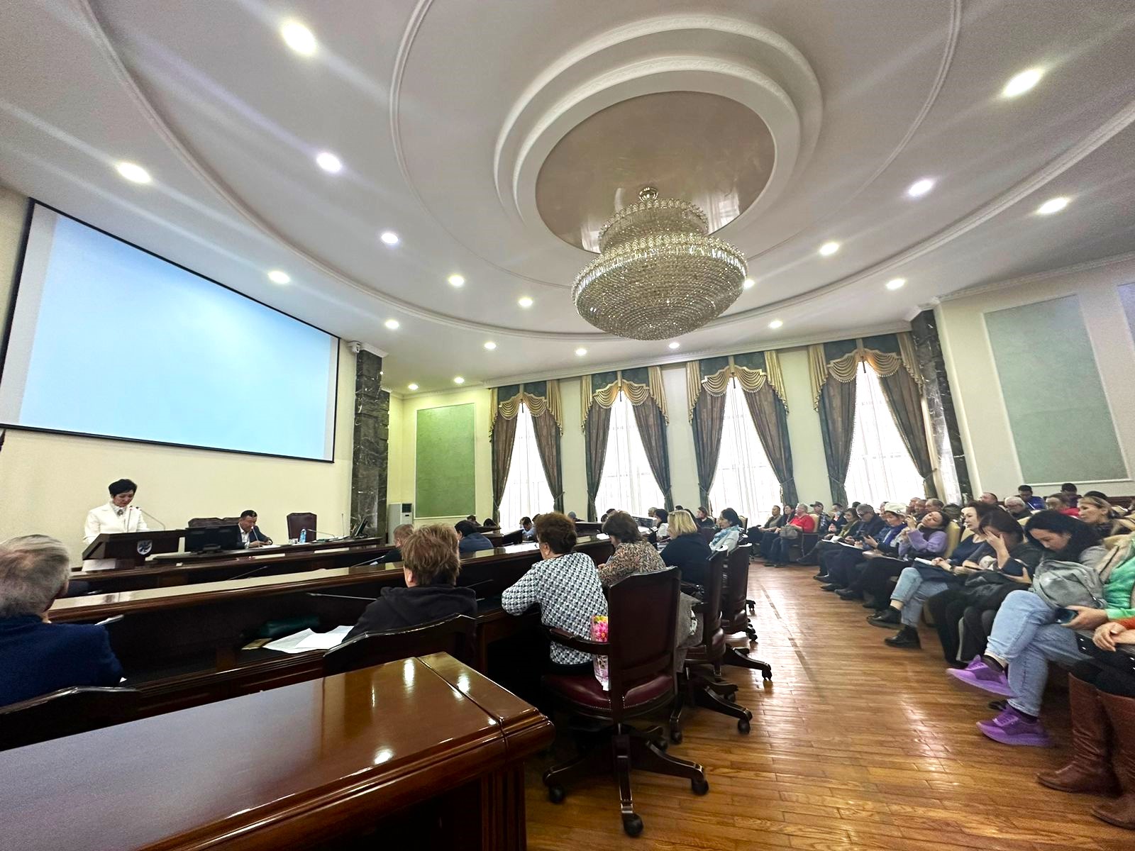 В Большом зале администрации города Якутска собрались представители Союза садоводов России. Модератором совещания выступила член Общественной палаты Республики Саха (Якутии), председатель регионального отделения Союза садоводов России Вера Ивановна Устинова.